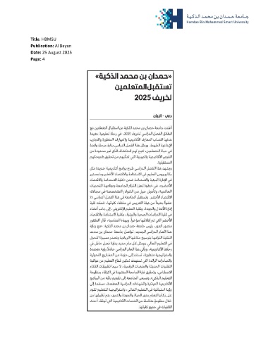 Title: HBMSU Publication: Al Bayan Date: 25 August 2025 Page: 4