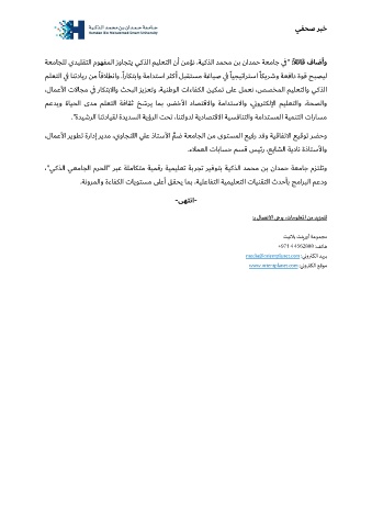 ةعماجلل يديلقتلا موهفملا زواجتي يكذلا ميلعتلا نأ نمؤن ،ةيكذلا دمحم نب نادمح ةعماج ي : " ف الئاق فاضأ و