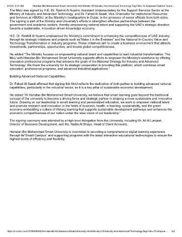 https://menafn.com/1109998992/Hamdan-Bin-Mohammed-Smart-University-And-Ministry-Of-Industry-And-Advanced-Technology-Sign-Mou-To-Empow… 2/2