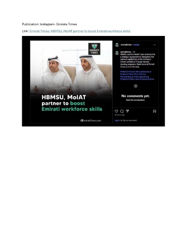Publication: Instagram- Emirate Times Link: Emirati Times: HBMSU, MoIAT partner to boost Emirati workforce skills