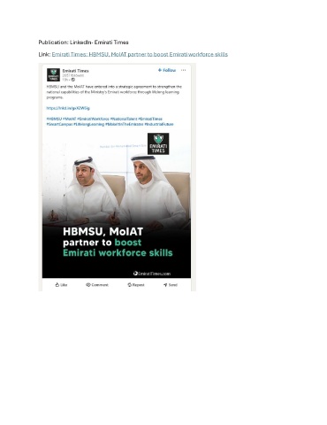 Publication: LinkedIn- Emirati Times Link: Emirati Times: HBMSU, MoIAT partner to boost Emirati workforce skills