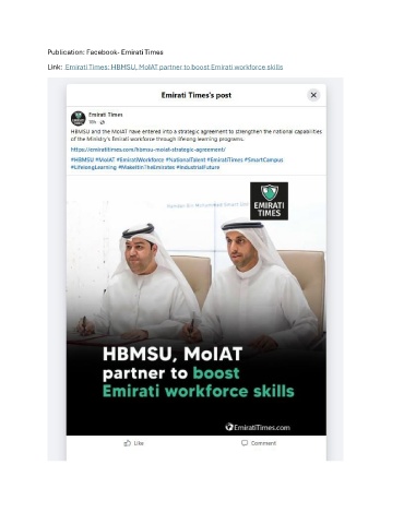 Publication: Facebook- Emirati Times Link: Emirati Times: HBMSU, MoIAT partner to boost Emirati workforce skills