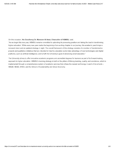 8/25/25, 9:40 AM          Hamdan Bin Mohammed Smart University welcomes learners for fall semester of 2025 - Middle East News 247