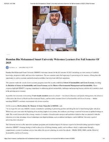 8/25/25, 9:41 AM             Hamdan Bin Mohammed Smart University welcomes learners for fall semester of 2025 | Web Release