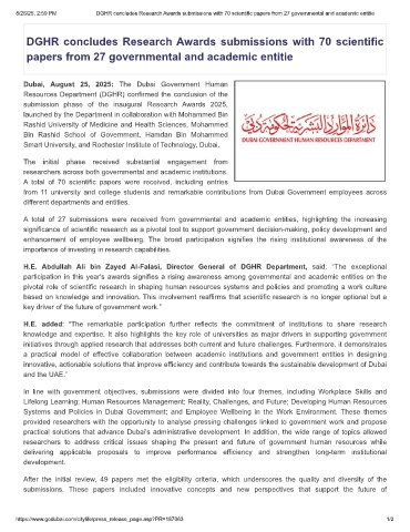 8/26/25, 2:59 PM        DGHR concludes Research Awards submissions with 70 scientific papers from 27 governmental and academic entitie