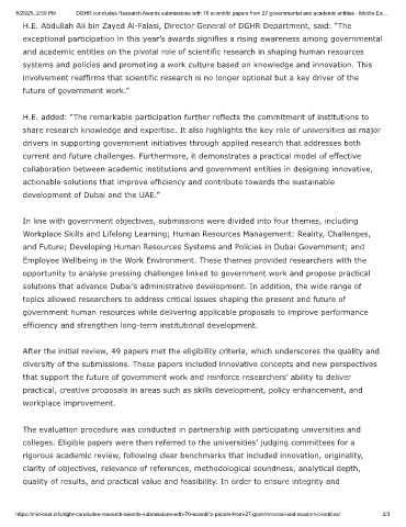 8/26/25, 2:59 PM DGHR concludes Research Awards submissions with 70 scientific papers from 27 governmental and academic entities - Middle Ea…