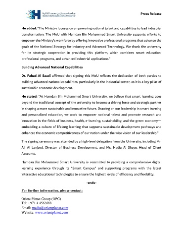 transformation. The MoU with Hamdan Bin Mohammed Smart University supports efforts to