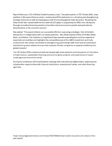 Raja Al Mazrouei, CEO of Etihad Credit Insurance, said, "Our participation in TXF Global 2025, a key