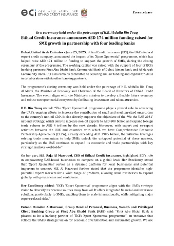 Her Excellency added: “ECI’s ‘Xport Xponential’ programme aligns with the UAE’s strategic