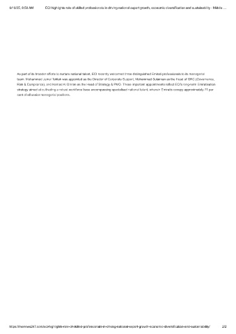 6/10/25, 8:50 AM ECI highlights role of skilled professionals in driving national export growth, economic diversification and sustainability - Middle …