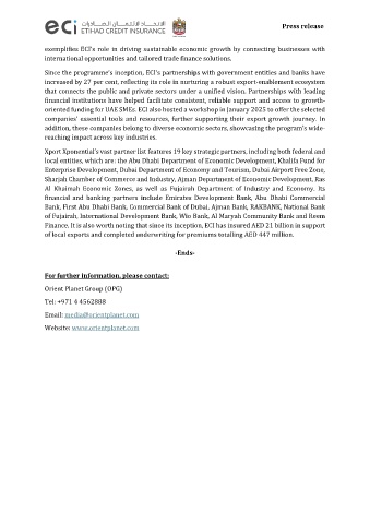 oriented funding for UAE SMEs. ECI also hosted a workshop in January 2025 to offer the selected