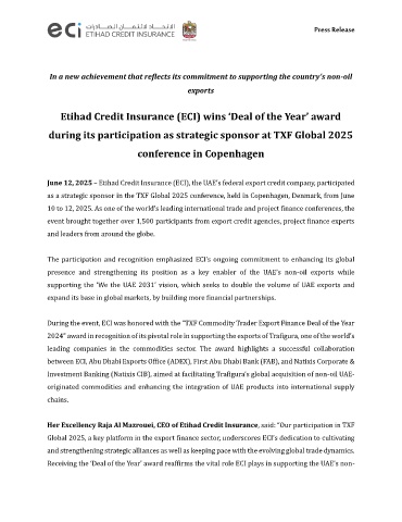 June 12, 2025 – Etihad Credit Insurance (ECI), the UAE's federal export credit company, participated
