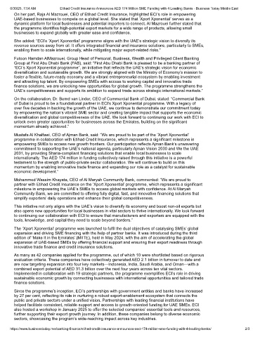 https://www.businesstoday.me/banking-finance/etihad-credit-insurance-announces-aed-174-million-sme-funding-with-4-leading-banks/  2/3