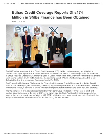 6/30/25, 7:54 AM  Etihad Credit Coverage Reports Dhs174 Million In SMEs Finance Has Been Obtained Latest Business News, Trending Topics & Jo…
