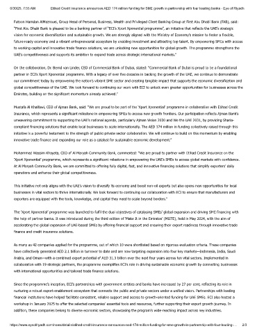 https://www.eyeofriyadh.com/news/details/etihad-credit-insurance-announces-aed-174-million-funding-for-sme-growth-in-partnership-with-four-leading-…  2/3