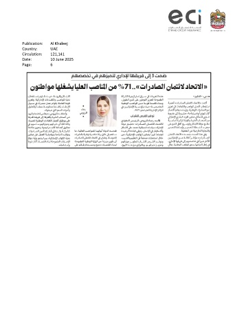 Publication: Al Khaleej Country: UAE Circulation: 121,141 Date: 10 June 2025 Page: 6
