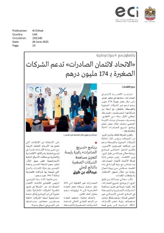 Publication: Al Etihad Country: UAE Circulation: 109,640 Date: 26 June 2025 Page: 19