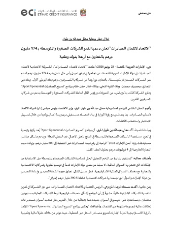 نويلم 174 ـب ةطسوتلماو ةريغصلا تاكرشلا ومن ل اهمعد نلعت "تارداصلا نامتئلا داحتلاا "