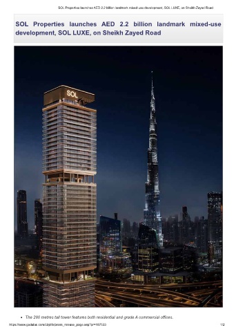 SOL Properties launches AED 2.2 billion landmark mixed-use development, SOL LUXE, on Sheikh Zayed Road