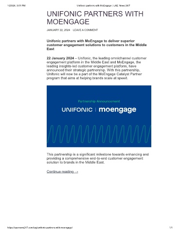 1/23/24, 3:01 PM                               Unifonic partners with MoEngage | UAE News 24/7
