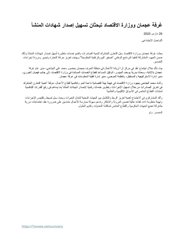كلذو أشنملا تاداهش رادصإ لهسُت ةروطتم تامدخ ميدقتو تارداصلا ةيمنتل كرتشملا نواعتلا لبس داصتقلاا ةرازوو نامجع ةفرغ تثحب