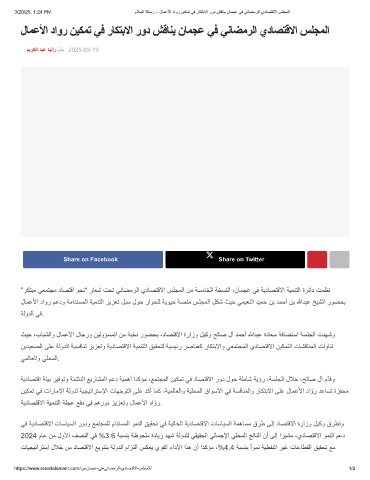 3/20/25, 1:24 PM مﻼﺳﻟا ﺔﻟﺎﺳر – لﺎﻣﻋﻷا داور نﯾﻛﻣﺗ ﻲﻓ رﺎﻛﺗﺑﻻا رود شﻗﺎﻧﯾ نﺎﻣﺟﻋ ﻲﻓ ﻲﻧﺎﺿﻣرﻟا يدﺎﺻﺗﻗﻻا سﻠﺟﻣﻟا