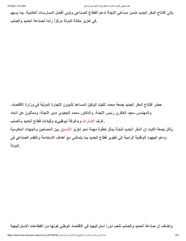 بﻠﺻﻟاو دﯾدﺣﻟا ﺔﻋﺎﻧﺻﻟ ًادﺋار ًازﻛرﻣ ﺔﻟودﻟا ﺔﻧﺎﻛﻣ زﯾزﻌﺗ ﻲﻓ.