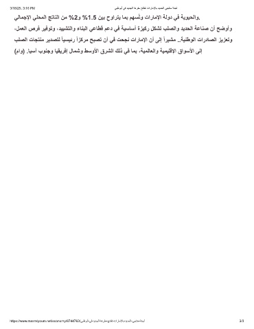 بﻠﺻﻟا تﺎﺟﺗﻧﻣ رﯾدﺻﺗﻟ ًﺎﯾﺳﯾﺋر ًازﻛرﻣ ﺢﺑﺻﺗ نأ ﻲﻓ تﺣﺟﻧ تارﺎﻣﻹا نأ ﻰﻟإ ًارﯾﺷﻣ ..ﺔﯾﻧطوﻟا تاردﺎﺻﻟا زﯾزﻌﺗو