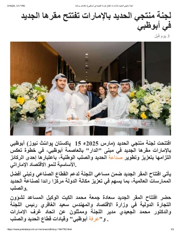 ﻲﺒظﻮﺑأ (زﻮﯿﻧ ﭧﻨﺋاﻮﭘ نﺎﺘﺴﮐﺎﭘ 15 ء2025 سرﺎﻣ) ﺪﯾﺪﺤﻟا ﻲﺠﺘﻨﻣ ﺔﻨﺠﻟ ﺖﺤﺘﺘﻓا