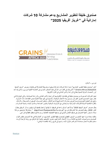 ايقيرفأ زنيرغ“ ضرعم تايلاعف يف ةكراشملل ةطسوتمو ةريغص ةيتارامإ تاكرش 10 ـل همعد ”عيراشملا ريوطتل ةفيلخ قودنص“ نلعأ
