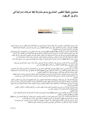 يف ةيتارامإ تاكرش 10 ةكراشم معدي عيراشملا ريوطتل ةفيلخ قودنص