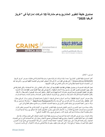 ايقيرفأ زنيرغ“ ضرعم تايلاعف يف ةكراشملل ةطسوتمو ةريغص ةيتارامإ تاكرش 10 ـل همعد ”عيراشملا ريوطتل ةفيلخ قودنص“ نلعأ