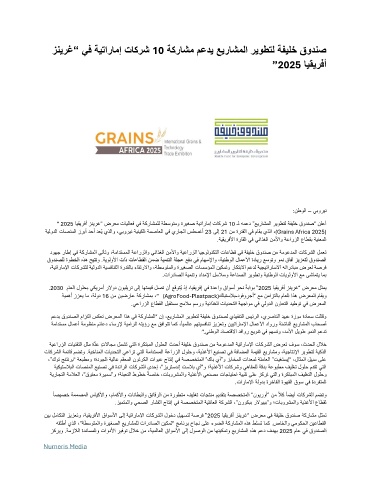 ” 2025 ايقيرفأ زنيرغ“ ضرعم تايلاعف يف ةكراشملل ةطسوتمو ةريغص ةيتارامإ تاكرش 10 ـل همعد ”عيراشملا ريوطتل ةفيلخ قودنص“ نلعأ