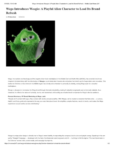 9/10/25, 10:53 AM             Wego Introduces Weegio: A Playful Alien Character to Lead Its Brand Refresh - Middle East News 247