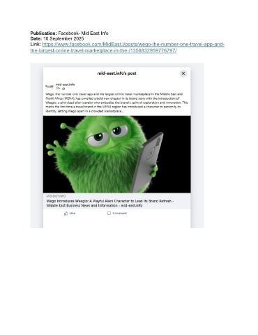 Publication: Facebook- Mid East Info Date: 10 September 2025 Link: https://www.facebook.com/MidEast.i/posts/wego-the-number-one-travel-app-and- the-largest-online-travel-marketplace-in-the-/1356832959776797/