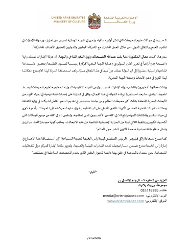 ﺔﻓﺎﻘﺜﻟا ةرازو �� ﺎﻨﺋﺎ�ﺮــﺸﻟ ﻞﻣﺎ�ﻟا ﻢﻋﺪﻟا ﻢﻳﺪﻘﺗ �� ﺮﻤﺘــﺴنــﺳ ﺎﻨبﻧﺎﺟ ﻦﻣو . ﻢﻟﺎﻌﻟا تﺎﻄﻴﺤﻣ ��ﻛأ ﺚﻟﺎﺜﺑ ﺔﻘﻠﻌﺘﳌا ﺔ�ﺮﺤﺒﻟا ثﺎﺤﺑﻷا