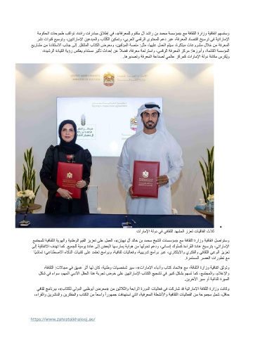 ،ةفاقثلا :تلااجم يف قيمع رثأ اهل ناك ،ةينطو تايصخش ريس ،»تاراملإا ءابدأو باتك داحتا« عم ،ةفاقثلا ةرازو ةيقافتا قثوتو