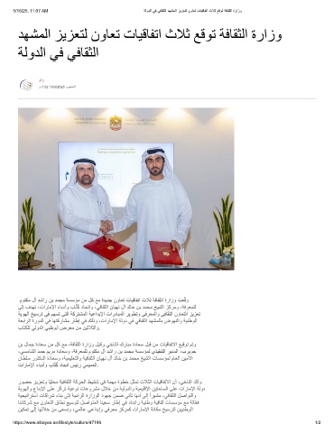 5/16/25, 11:07 AM ﺔﻟودﻟا ﻲﻓ ﻲﻓﺎﻘﺛﻟا دﮭﺷﻣﻟا زﯾزﻌﺗﻟ نوﺎﻌﺗ تﺎﯾﻗﺎﻔﺗا ثﻼﺛ ﻊﻗوﺗ ﺔﻓﺎﻘﺛﻟا ةرازو