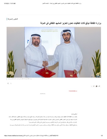 https://www.aletihad.ae/news/ﻲﻓﺎﻘﺛﻟا-دﮭﺷﻣﻟا-زﯾزﻌﺗﻟ-نوﺎﻌﺗ-تﺎﯾﻗﺎﻔﺗا-ثﻼﺛ-ﻊﻗوﺗ-ﺔﻓﺎﻘﺛﻟا-ةرازو/4574883/ﺔﻓﺎﻘﺛ 1/3