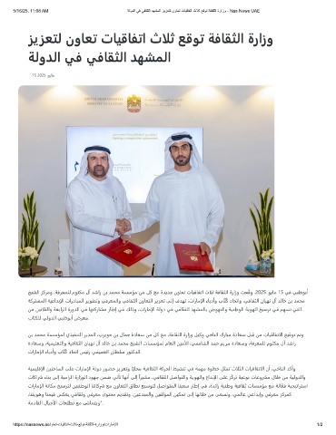 5/16/25, 11:08 AM ﺔﻟودﻟا ﻲﻓ ﻲﻓﺎﻘﺛﻟا دﮭﺷﻣﻟا زﯾزﻌﺗﻟ نوﺎﻌﺗ تﺎﯾﻗﺎﻔﺗا ثﻼﺛ ﻊﻗوﺗ ﺔﻓﺎﻘﺛﻟا ةرازو - Nas News UAE