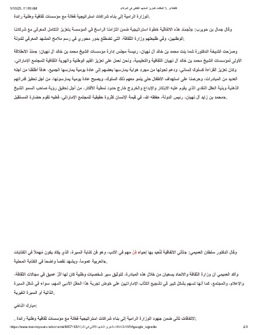 5/16/25, 11:09 AM «ﺔﻟودﻟا ﻲﻓ ﻲﻓﺎﻘﺛﻟا دﮭﺷﻣﻟا زﯾزﻌﺗﻟ تﺎﻗﺎﻔﺗا 3 ..«ﺔﻓﺎﻘﺛﻟا