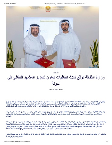 5/16/25, 11:09 AM 24 تارﺎﻣﻹا « ﺔﻟودﻟا ﻲﻓ ﻲﻓﺎﻘﺛﻟا دﮭﺷﻣﻟا زﯾزﻌﺗﻟ نوﺎﻌﺗ تﺎﯾﻗﺎﻔﺗا ثﻼﺛ ﻊﻗوﺗ ﺔﻓﺎﻘﺛﻟا ةرازو