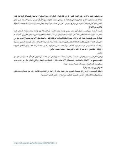 رّيغتل ةديازتملا تاديدهتلا ةهجاومو ّ رمتسملا يعارزلا ملاعلا ل ّ وحت ّلظ يف هنإ :ةينفلا ةمّيقلا ،ملع وبأ ةزع تلاق ،اهتيحان نم