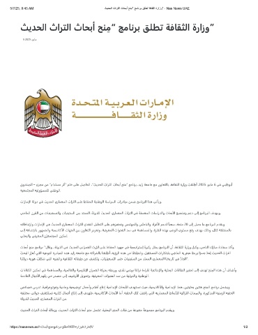 5/7/25, 9:45 AM ثﯾدﺣﻟا ثارﺗﻟا ثﺎﺣﺑأ ﺢﻧِﻣ" ﺞﻣﺎﻧرﺑ ﻖﻠطﺗ ﺔﻓﺎﻘﺛﻟا ةرازو" - Nas News UAE