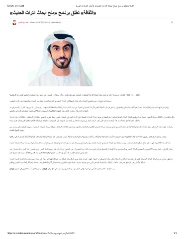 5/7/25, 9:47 AM «موﯾﻟا تارﺎﻣﻹا رﺎﺑﺧأ | «ثﯾدﺣﻟا ثارﺗﻟا ثﺎﺣﺑأ ﺢﻧِﻣ» ﺞﻣﺎﻧرﺑ ﻖﻠطﺗ «ﺔﻓﺎﻘﺛﻟا