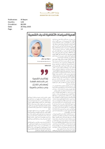 Publication: Al Bayan Country: UAE Circulation: 88,000 Date: 26 May 2025 Page: 14