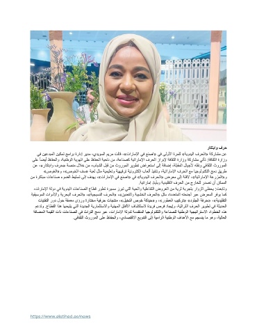 نم ةركتبم تاعانص ءوضلا طيلست ىلإ فدهي ،»تاراملإا يف عنصا« يف »ةيوديلا فرح لا« ضرعم ىلإ ةتفلا ،»ةيتاراملإا ةعرزملا«و