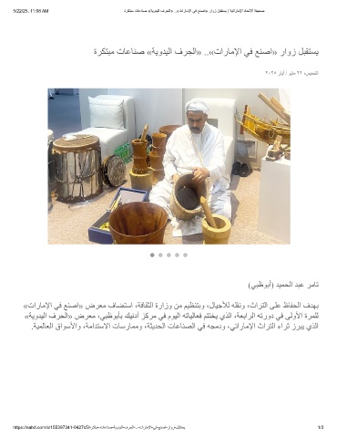 5/22/25, 11:08 AM ةرﻛﺗﺑﻣ تﺎﻋﺎﻧﺻ «ﺔﯾودﯾﻟا فر ِ ﺣﻟا» ..«تارﺎﻣﻹا ﻲﻓ ﻊﻧﺻا» راوز لﺑﻘﺗﺳﯾ | ﺔﯾﺗارﺎﻣﻹا دﺎﺣﺗﻻا ﺔﻔﯾﺣﺻ