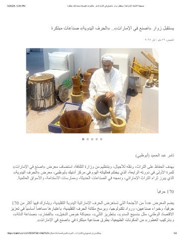 5/26/25, 5:05 PM ةرﻛﺗﺑﻣ تﺎﻋﺎﻧﺻ «ﺔﯾودﯾﻟا فر ِ ﺣﻟا» ..«تارﺎﻣﻹا ﻲﻓ ﻊﻧﺻا» راوز لﺑﻘﺗﺳﯾ | ﺔﯾﺗارﺎﻣﻹا دﺎﺣﺗﻻا ﺔﻔﯾﺣﺻ
