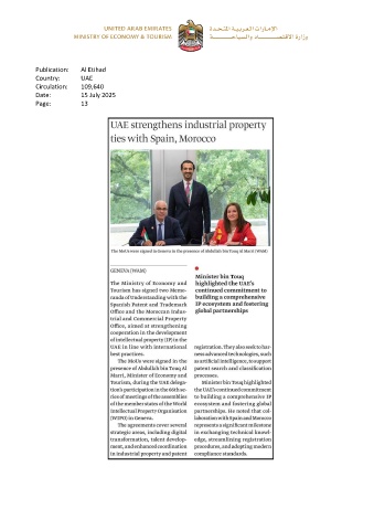 Publication: Al Etihad Country: UAE Circulation: 109,640 Date: 15 July 2025 Page: 13